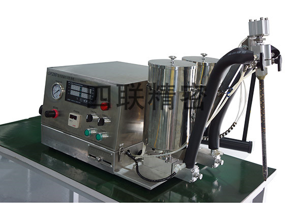 該設(shè)備可實(shí)現(xiàn)在密封條件下進(jìn)行樹脂定量灌封,可以擺放在工作臺(tái)上。整個(gè)過程分為樹脂的加熱保溫、計(jì)量配比、在線混合、自動(dòng)或手工灌封及清洗五個(gè)過程。加熱保溫采用PID智能溫度控制方式;在線混合采用靜態(tài)混料器;定量灌封應(yīng)用國際先進(jìn)的高精度強(qiáng)制性容積計(jì)量方式(或齒輪泵計(jì)量方式);清洗工藝簡便,特制配方的清洗液確;旌掀鞯氖褂脡勖